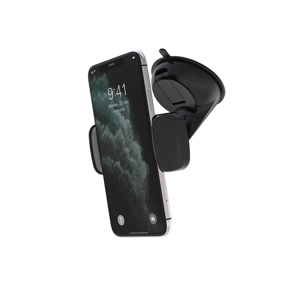 Uniwersalny uchwyt samochodowy Devia ES049 z przyssawką i obrotem 360°, oferujący stabilne mocowanie i łatwy montaż.