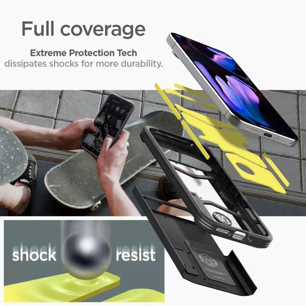 Spigen Tough Armor to etui idealnie dopasowane do Twojego Google Pixel 9 Pro XL. Chroni Twój telefon bez kompromisów, oferując pełną funkcjonalność, precyzyjne wycięcia i osłony na przyciski. Smukły, czarny design doskonale komponuje się z nowoczesnym wyglądem Twojego urządzenia.