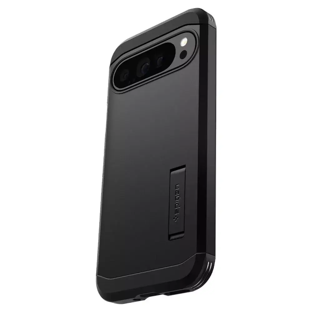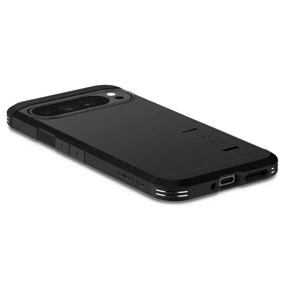Etui Spigen Tough Armor do Google Pixel 9 Pro XL w kolorze czarnym zapewnia nie tylko doskonałą ochronę, ale także stylowy wygląd. Jego dwuczęściowa konstrukcja, wykonana z wytrzymałego termoplastycznego tworzywa i wzmocnionej ramki poliwęglanowej, gwarantuje maksymalną wytrzymałość w codziennym użytkowaniu. Wnętrze wypełnione technologiczną pianką zapewnia dodatkową warstwę ochrony przed uderzeniami i upadkami.