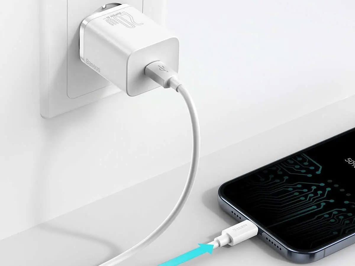 Ładowarka sieciowa Baseus Super Si USB-C z kablem do iPhone to idealne połączenie wydajności i bezpieczeństwa. Dzięki obsłudze technologii Power Delivery 20W, urządzenie ładuje baterię błyskawicznie i bezpiecznie, osiągając do 48% naładowania w zaledwie 30 minut. Kompaktowa konstrukcja sprawia, że idealnie sprawdzi się zarówno w domu, pracy, jak i w podróży.