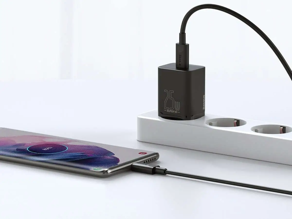 Ładowarka sieciowa Baseus USB-C PD 25W z kablem USB-C to praktyczne i wydajne rozwiązanie do ładowania urządzeń mobilnych. Dzięki wsparciu technologii Power Delivery 25W zapewnia szybkie ładowanie w zaledwie 30 minut, osiągając 48% naładowania baterii. Jej kompaktowy i minimalistyczny design sprawdzi się zarówno w domu, jak i w podróży.