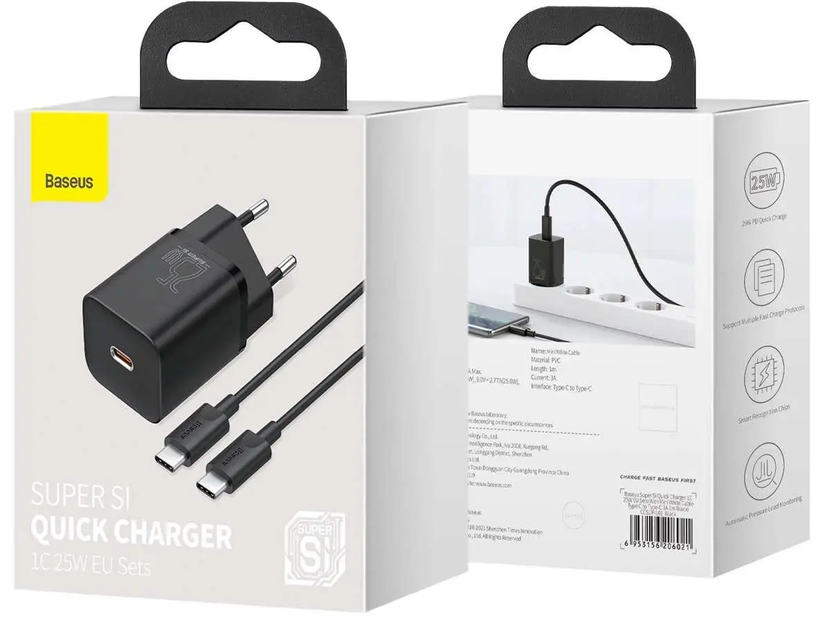 Ładowarka sieciowa Baseus USB-C PD 25W z kablem USB-C czarna